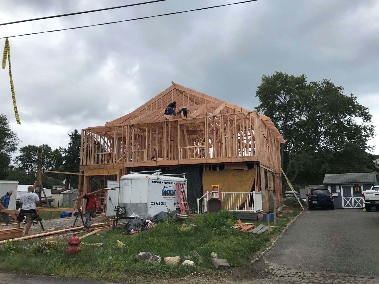 Multiple examples of stick framing
